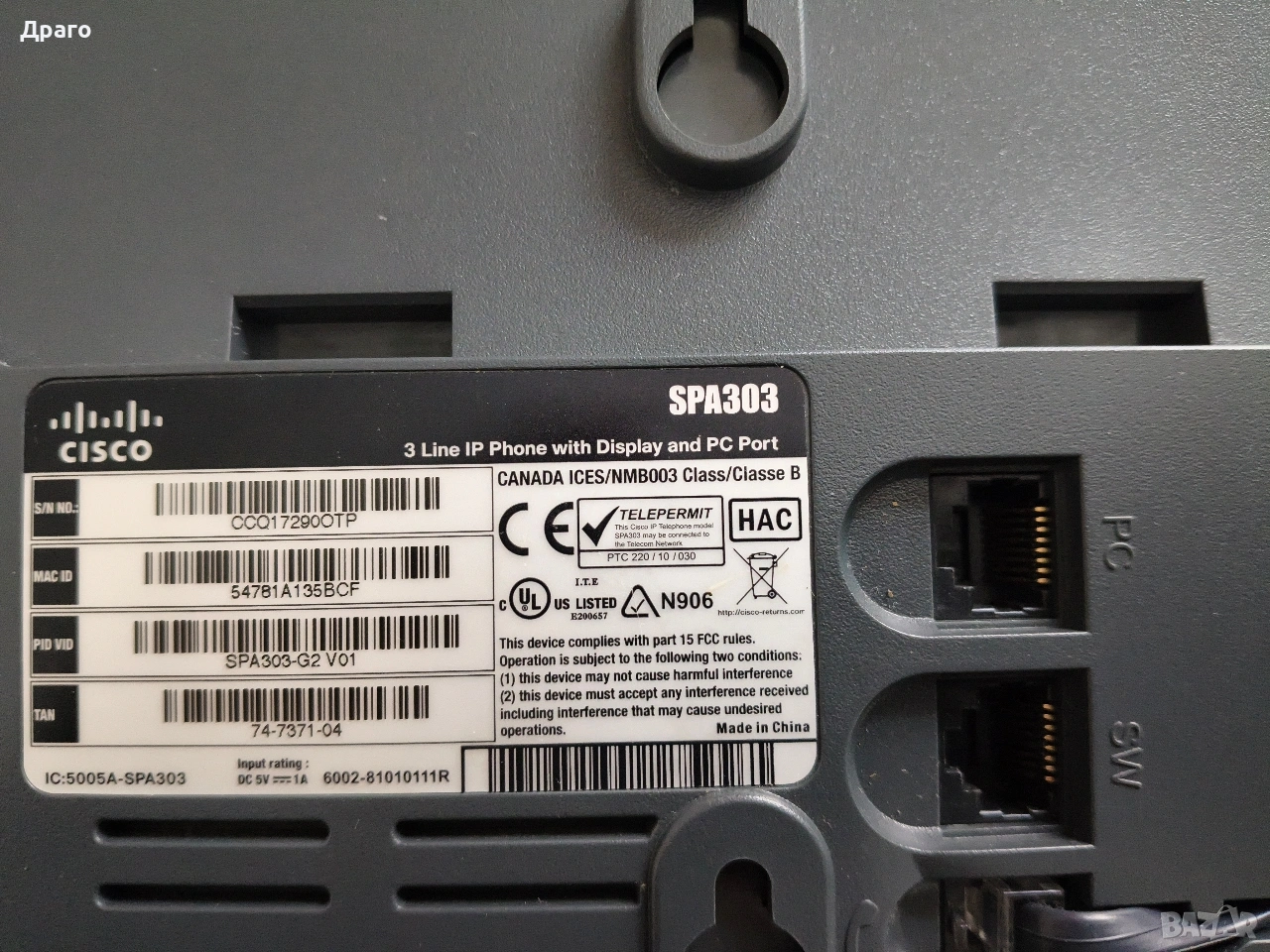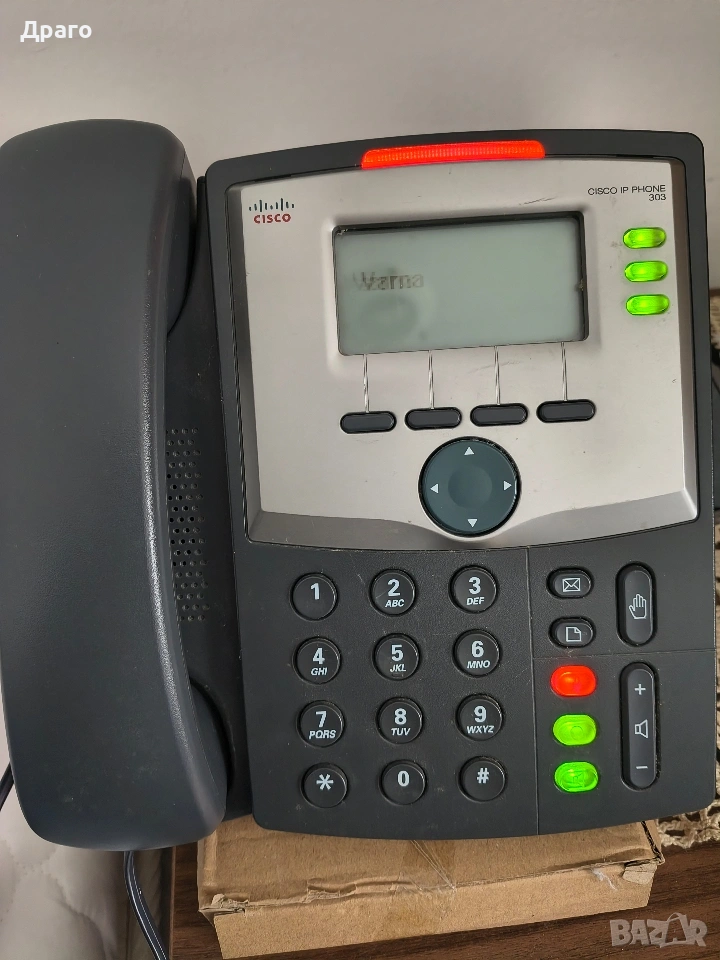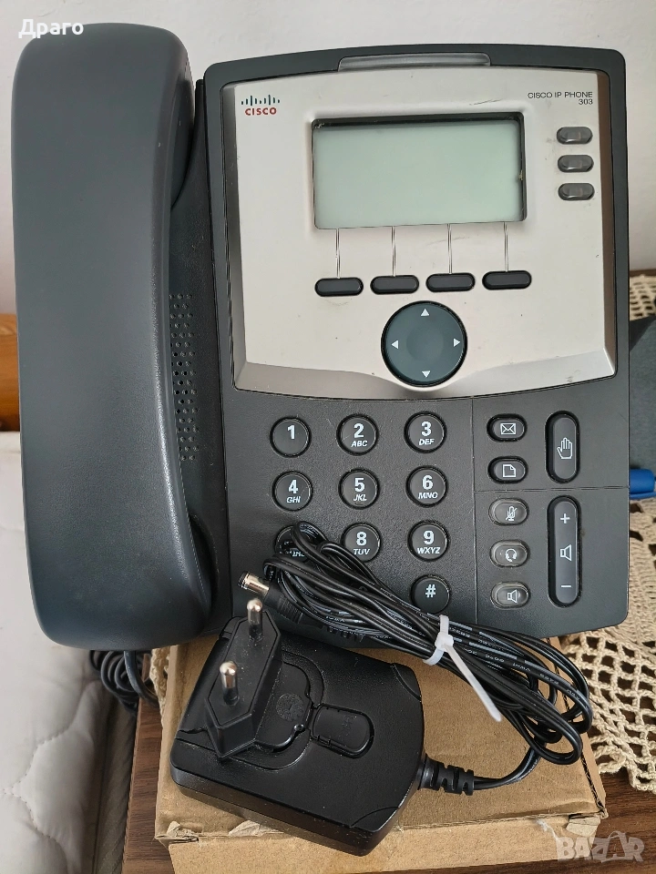 Налични тел. 2 бр. Цената е за 1 бр.Използвани са като домашни и са в много добро състояние. Телефонът Cisco SPA 303 е висококачествен продукт, идеален за употреба в офиса. Той има клавиатура с 12 бутона и дисплей с резолюция от 128 x 64 пиксела. Телефонът може да придържа до 3 линии и да осигури функции като Call Waiting, Distinctive Ring, Speed Dialling, Intercom, Call Hold, Call Forwarding, Conference Call, и Redialing. Също така разполага с вграден говорител, който позволява hands-free разговори. Телефонът разполага с функции, които го правят много удобен за употреба, като Caller ID и On-hook Dialling. Имайки предвид неговата висока функционалност, телефонът е много надежден и траен, благодарение на използваните качествени материали. Телефонът Cisco SPA 303 е идеално решение за всеки офис, който търси надеждно и висококачествено устройство за комуникация. Той е лесен за използване и предлага всички функции, които са необходими за ефективно обслужване на клиенти и комуникация с колеги. Интерком, Тел. указател - 60 записа, 2×RJ45 порта, Разделителната способност на екрана е 128 x 64 пиксела, Cisco SPA 303 притежава следните сертификати: FCC (15, B), UL, CE, A-Tick.
