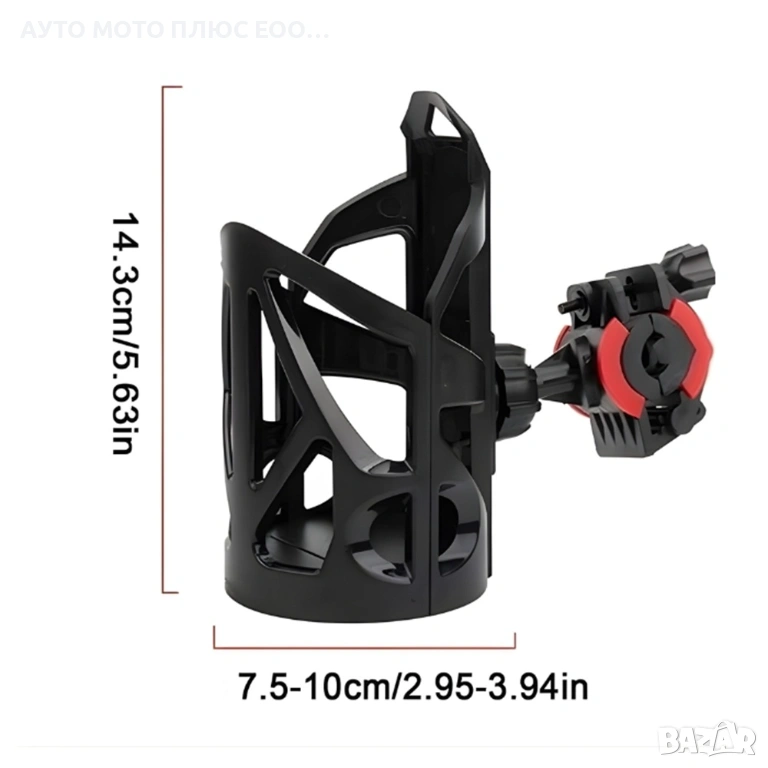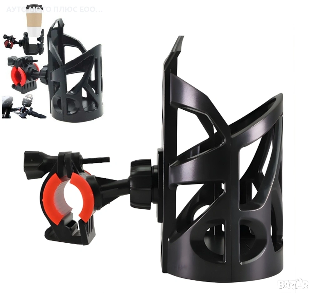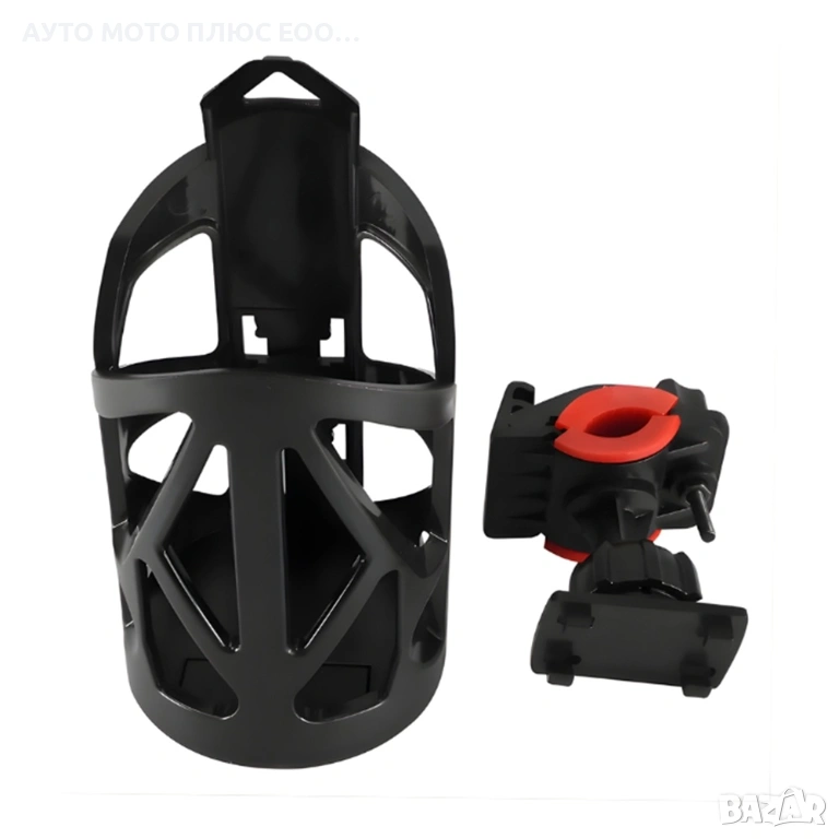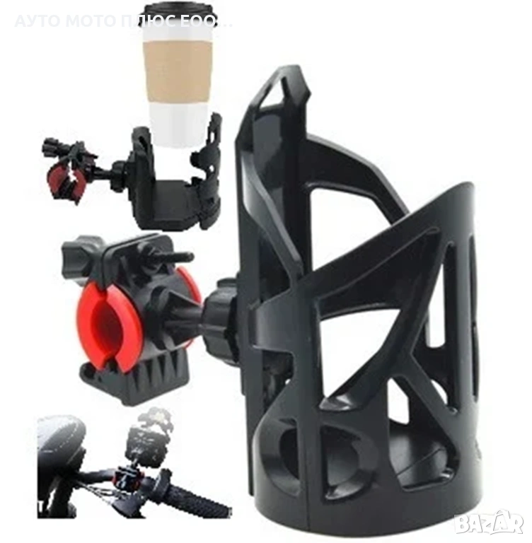Универсална стойка за чаша или бутилка, предназначена за монтаж върху кормилото на велосипед, мотоциклет или детска количка.