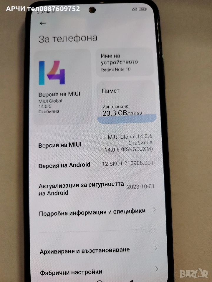 Модел: Redmi Note 10 5G 128GB 4GB RAM Dual