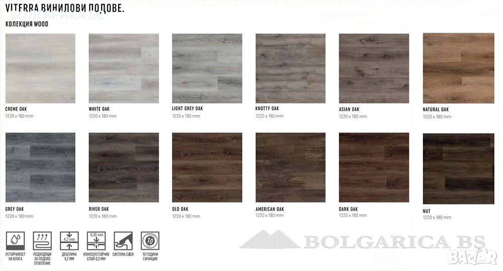 Дизайни: WHITE OAK, AMERICAN OAK, ASIAN OAK, CREAM OAK, DARK OAK, GREY