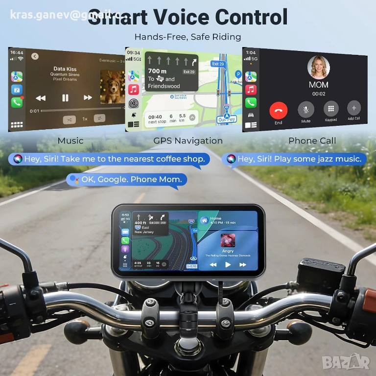 APHQUA A622 мотоциклетен CarPlay дисплей 6,25 инча с безжичен Apple CarPlay и Android car - алтернатива на навигацията за мотоциклет: дисплеят за мотоциклет APHQUA A622 поддържа безжичен Apple CarPlay и Android car. Използвайте GPS навигация, Google Maps, Waze, Spotify, обаждания, съобщения и приложения директно от екрана на мотоциклета. Благодарение на гласовото управление със Siri или Google Assistant, можете да управлявате навигацията, музиката и комуникацията безопасно, без да откъсвате поглед от пътя. Модерна алтернатива на класическите навигационни устройства за мотоциклети. Съвместим с повечето мотоциклети и смартфони (не е съвместим с Huawei и някои модели на Samsung).