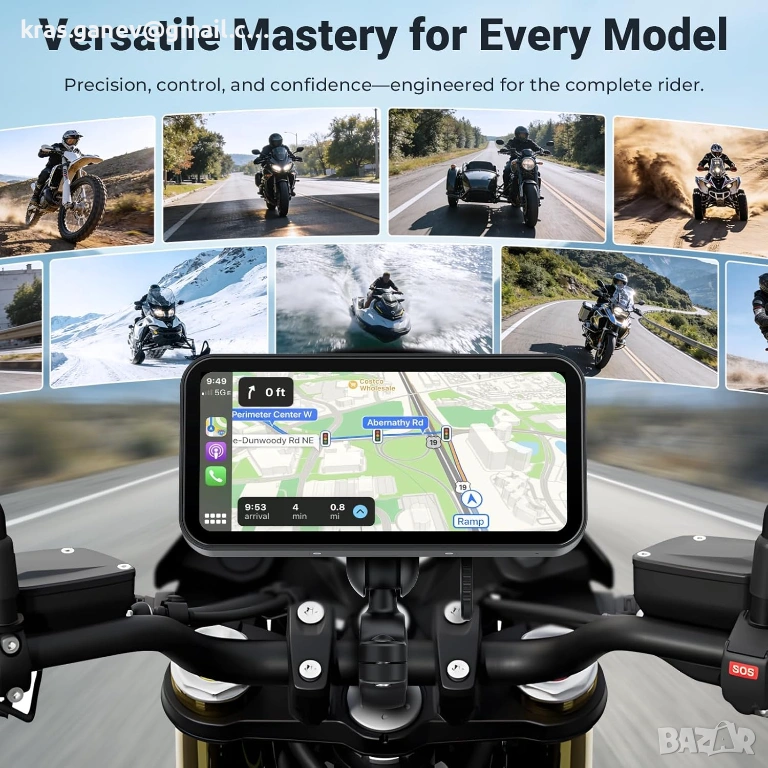 HD сензорен екран за мотоциклети с портретен и пейзажен режим + автоматично регулиране на яркостта: сензорният екран с висока резолюция и чувствителност поддържа както портретен, така и пейзажен режим и е идеален за GPS навигация, карти и мултимедия. Вграденият сензор за светлина автоматично регулира яркостта на екрана, за да осигури оптимална видимост денем и нощем.