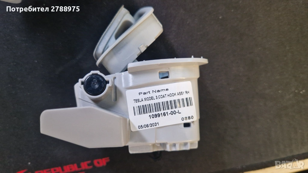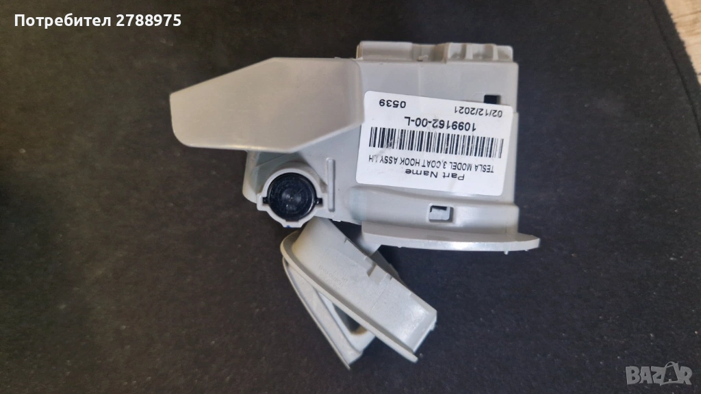 Продавам употребявани оригинални закачалки за дрехи (Coat Hook Assembly) за Tesla Model 3 — лява и дясна.