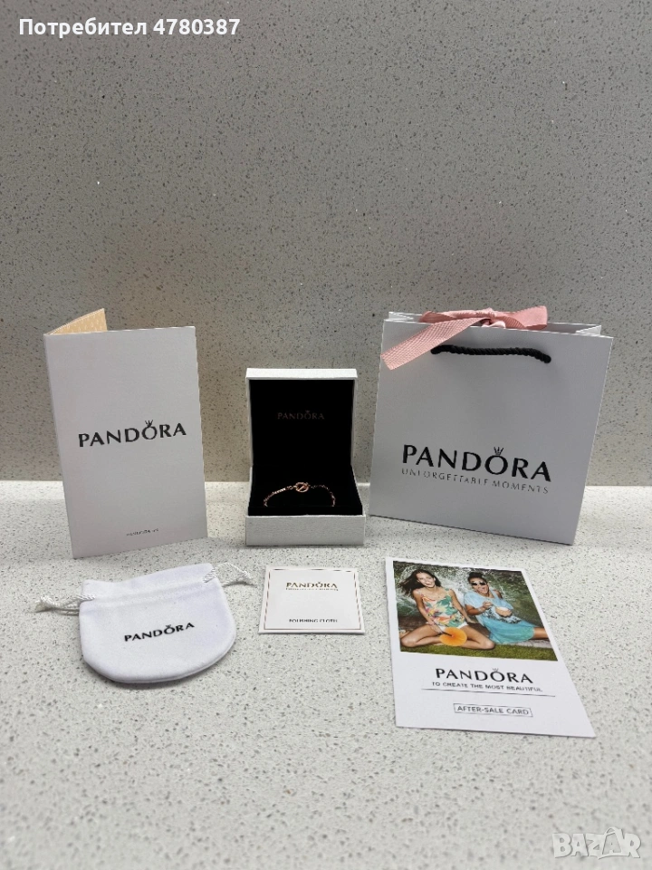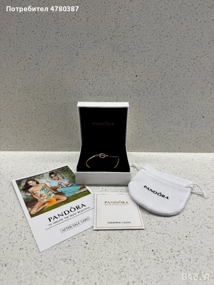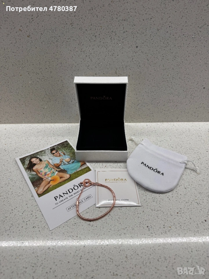 Продавам розово-златиста гривна Pandora. Продава се с пълен комплект аксесоари: