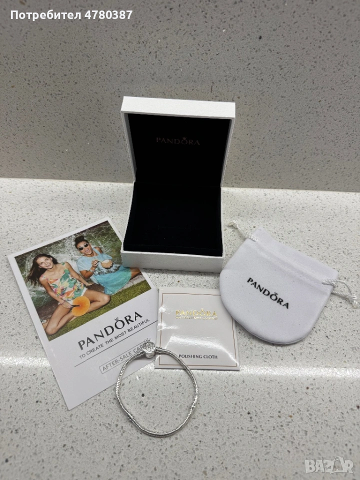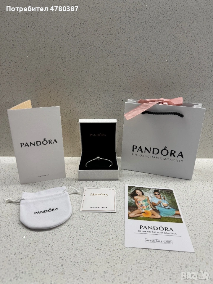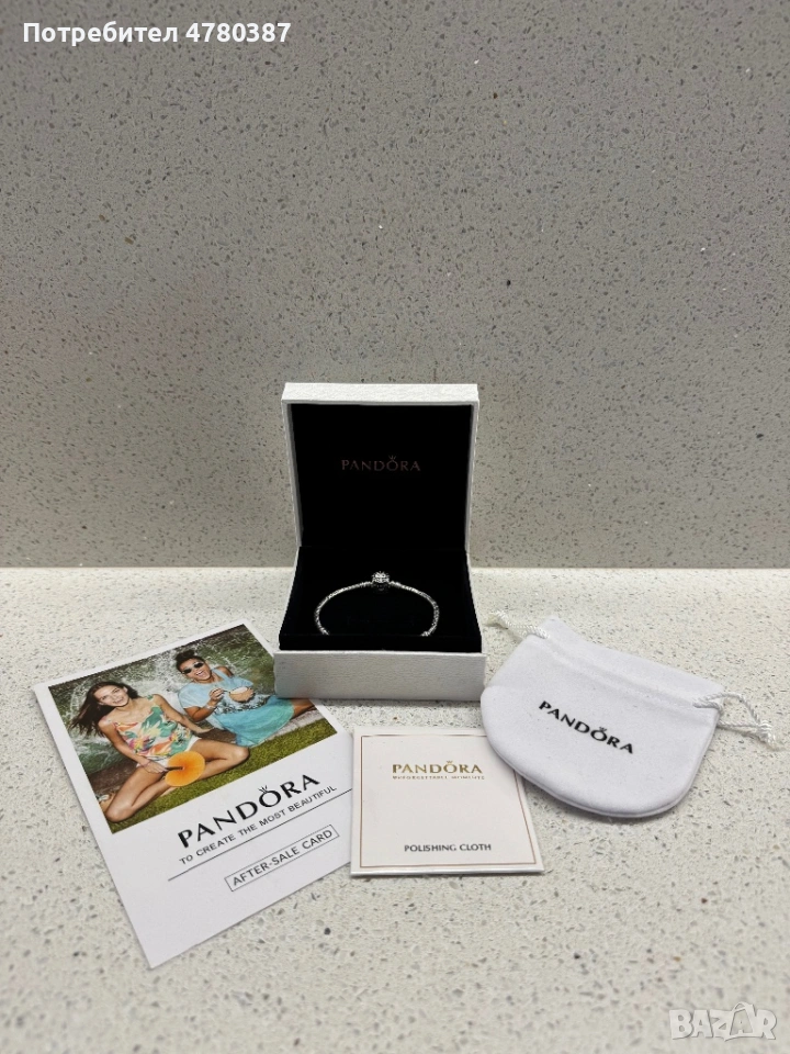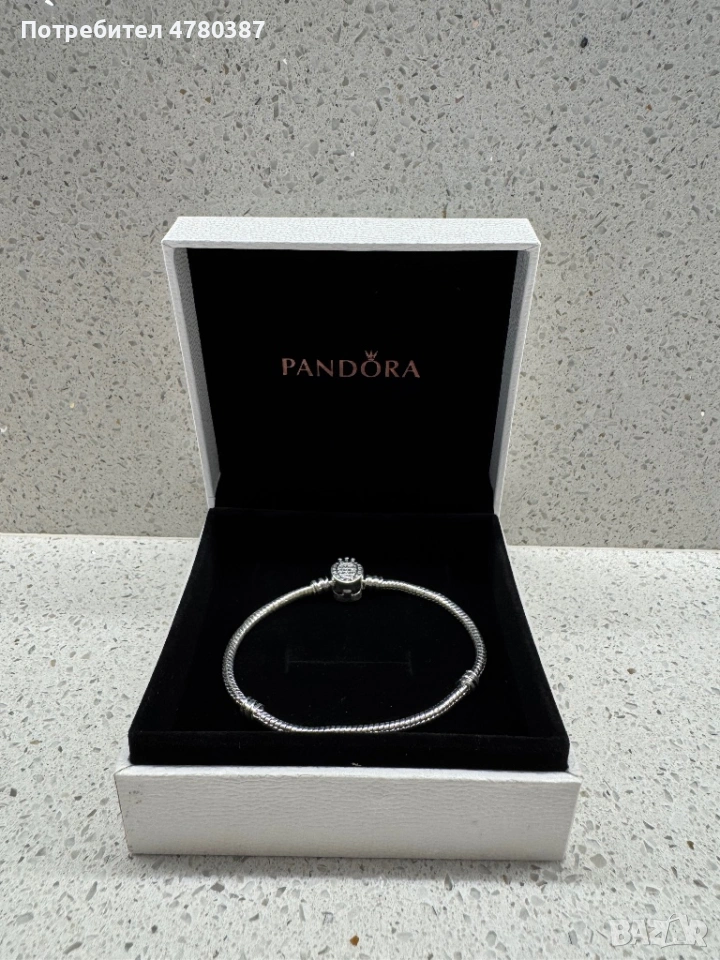 Продавам сребърна гривна Pandora Crown. Продава се с пълен комплект аксесоари:
