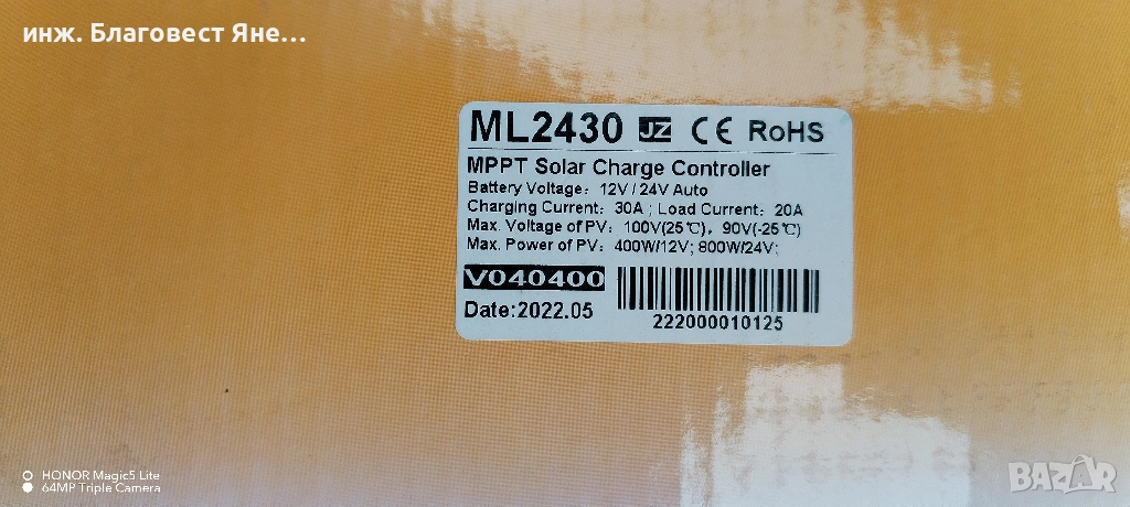 соларен контролер MPPT 30А висок клас позволяващ добавяне на още панели