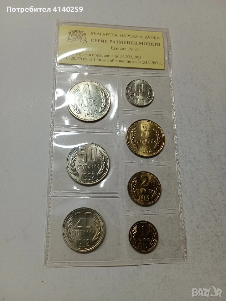 БЪЛГАРСКИ МОНЕТИ ЛОТ 1962 Г СЪСТОЯНИЕ НОВО ЦЕНА ЗА 7 БРОЯ ПОЛУЧАВАТЕ СНИМАНИЯ ЛОТ РАЗГЛЕДАЙТЕ ДРУГИТЕ МИ ОБЯВИ ДА КОМБИНИРАТЕ ДОСТАВКА ЕКОНТ ЗА ВАРНА ЛИЧНО