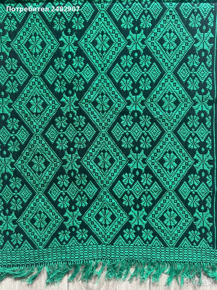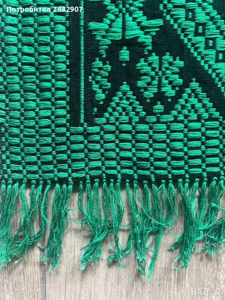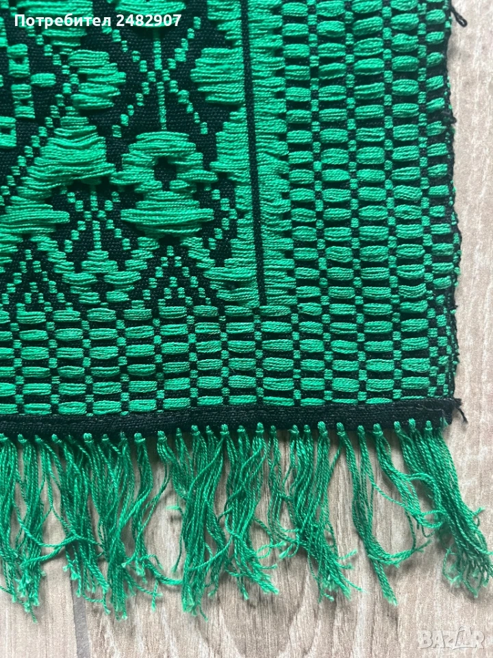 Много старо автентично битово килимче с ресни в черно и зелено. Размери без ресните - 60/117 см. Чисто ново, не е използвано, много красиво.