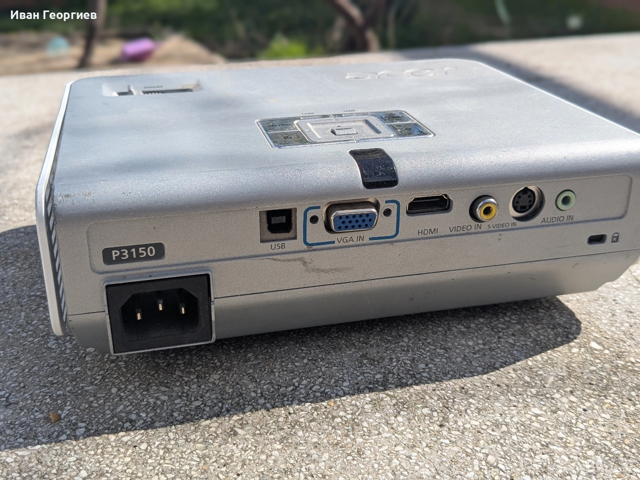 Проектора работи , но цветовете са бледи (най-вероятно лампата е за смяна) Проекторът Acer P3150 е преносим SVGA проектор. Този проектор, базиран на лампа, е способен да показва 2000 лумена при най-ярката си настройка с естествена резолюция от 800x600. Вградената DLP технология осигурява по-висок контраст, по-малко видими пиксели и по-голяма преносимост. С тегло от 1,2 кг, този преносим проектор е ярък и компактен, идеален за бизнес пътници, семейни почивки или просто за местене от стая в стая.