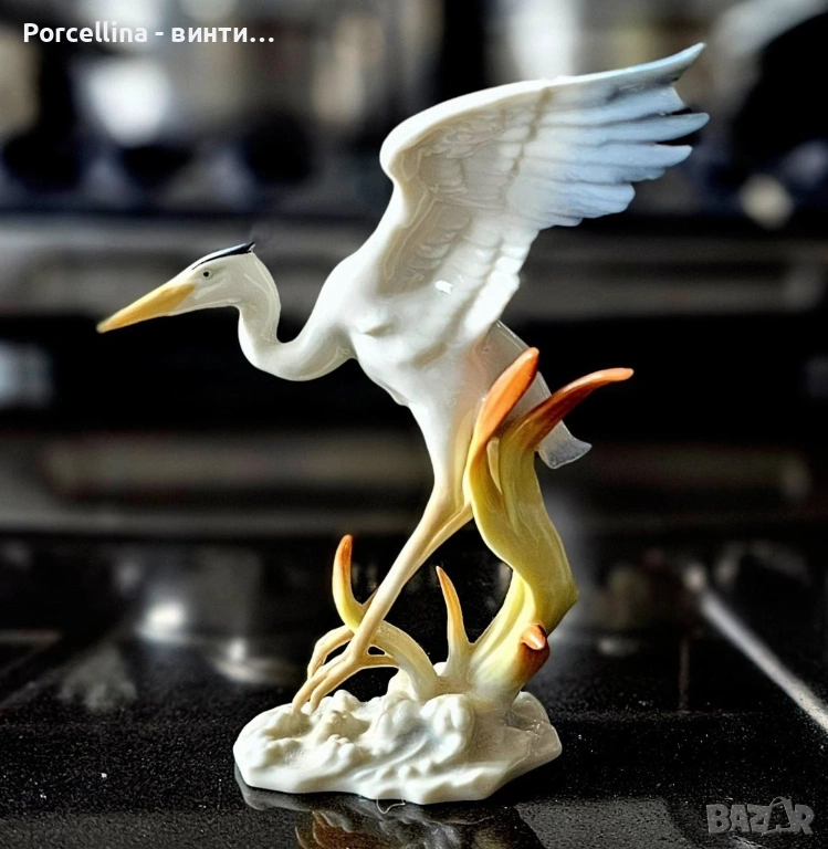 Hutschenreuther Achtziger Germany Porcelain Heron / Crane Bird “Жеръвът”- изящна и грациозна птица → Обява 54007760