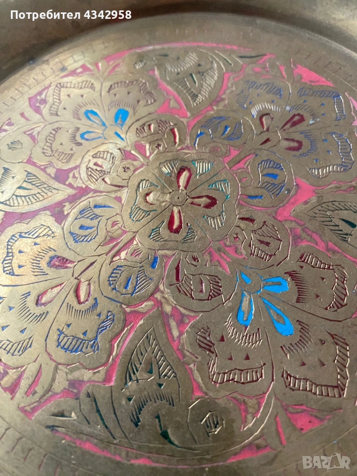 Предлагам красив винтидж сервиз от месинг, произведен в Индия, с богата орнаментика и декоративни цветни елементи. Комплектът е изключително подходящ както за употреба, така и за интериор в ориенталски / бохо стил.