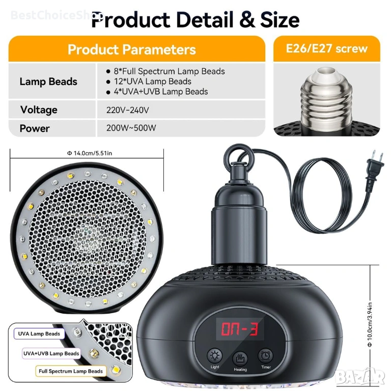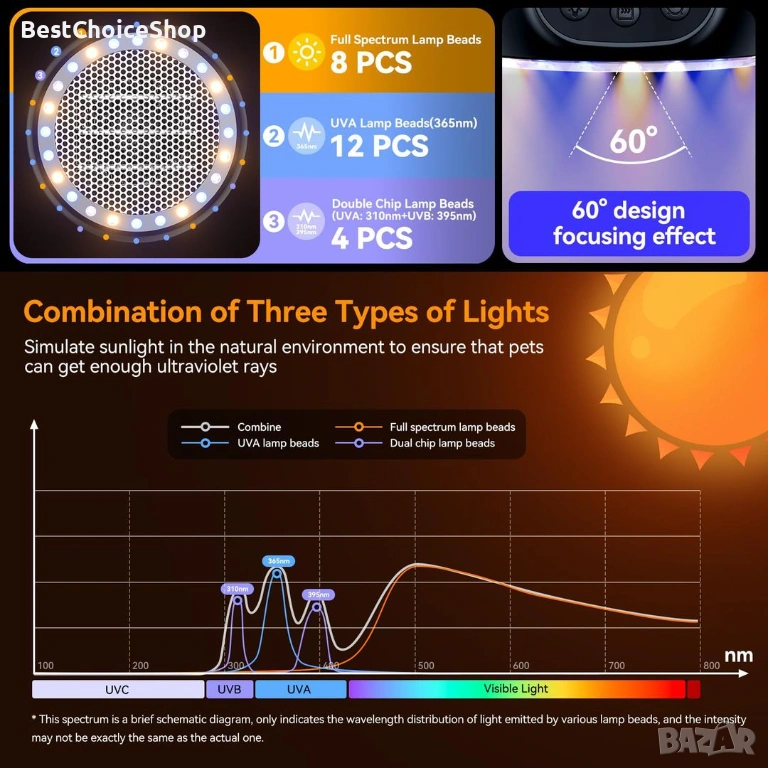 🔥【Подобрен нагревател】:Нагревателят TFNN има 8 крушки с пълна мощност, 12 UVA крушки (365nm) и 4 UVB крушки (UVA: 310nm + UVB: 395nm). Яркостта на лампата може да се регулира на три нива: ниско, средно и високо. Осигуряването на правилното количество UVA UVB UV лъчи за влечуги, кучета, пилета, пилета и други домашни птици може да насърчи усвояването на калций, силните кости и здравословния растеж на домашните любимци.