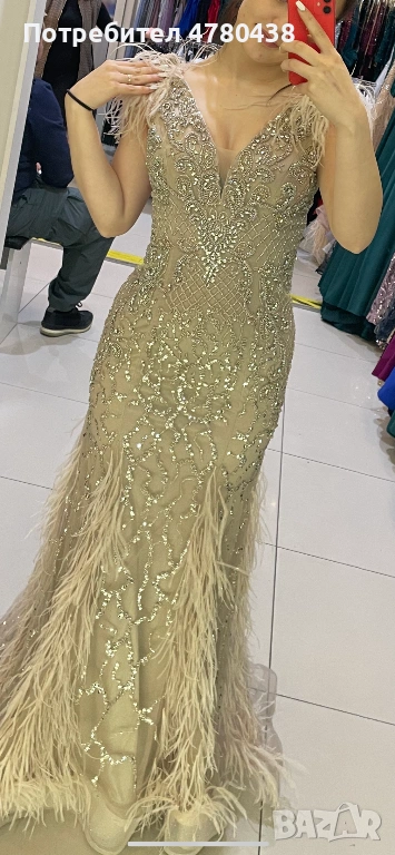 Бална рокля с пера, снимка 1 - Рокли - 54008207 Бална рокля с пера, снимка 2 - Рокли - 54008207 1/2