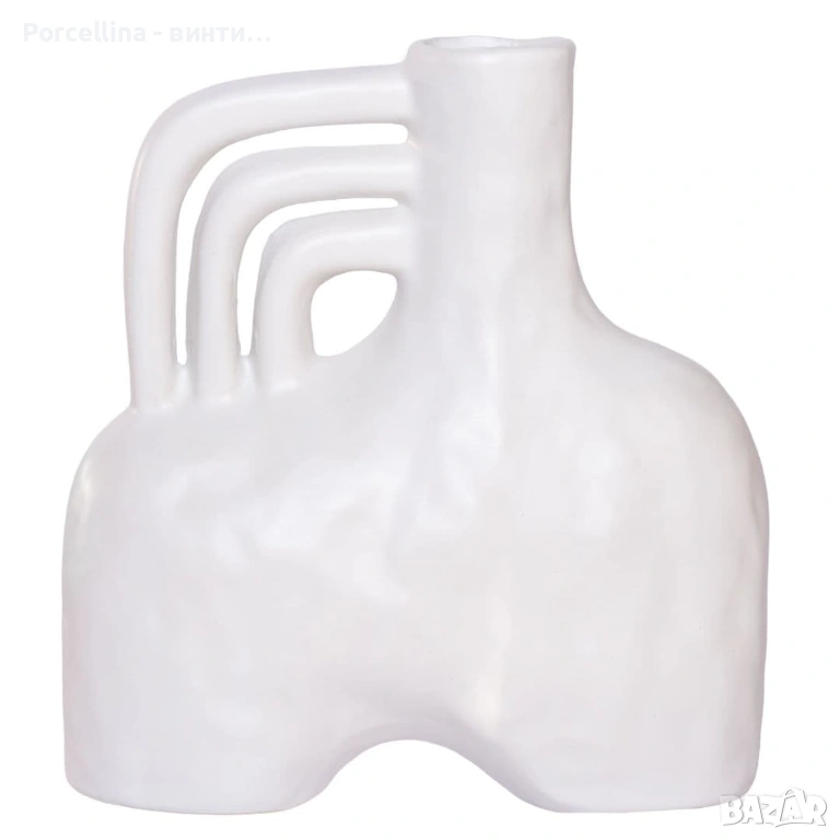 Тази керамична ваза в бяло антик впечатлява с нестандартна форма и изчистен дизайн, който превръща продукта в истински декоративен акцент. Матовото покритие и меките линии я правят подходяща както за модерен, така и за скандинавски, минималистичен или бохо интериор.