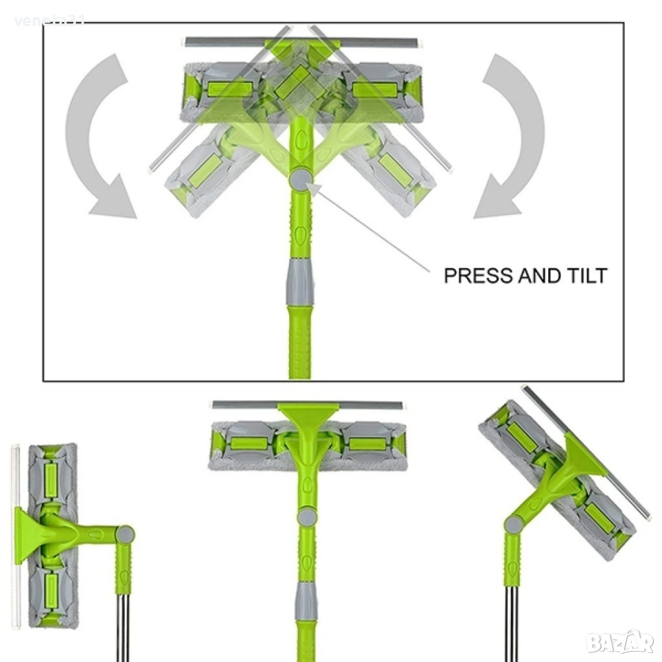 Моп, стъклочистачка с телескопична дръжка, чупеща глава, перяща предна част и резервен моп. УНИКАЛЕН моп 2в1, който ще намери широко прилоцежение във Вашият дом. Поръчайте на най-добра цена сега!