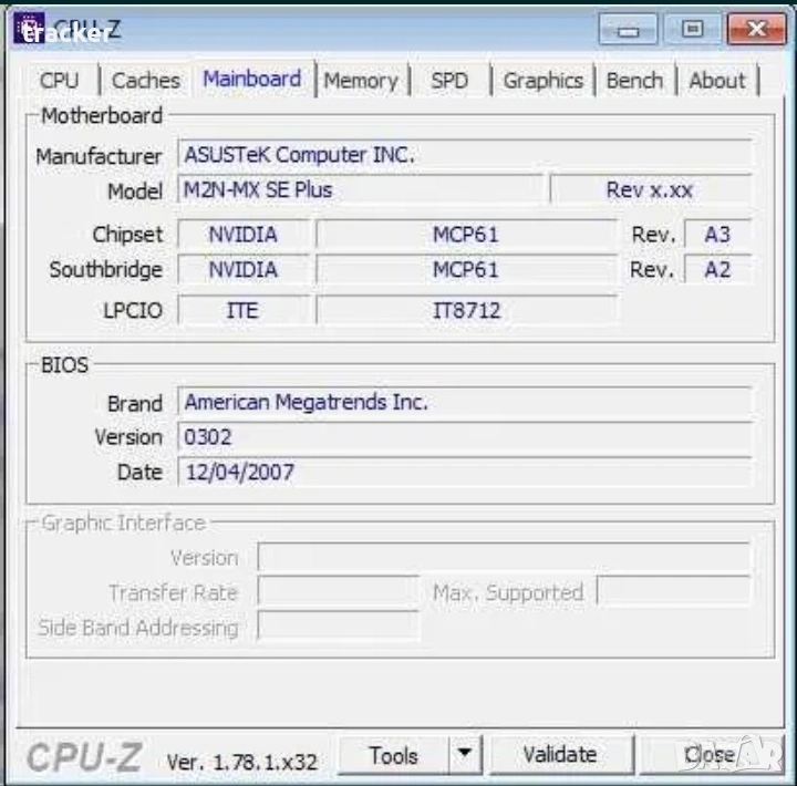 1. Дънна платка ASUS M2N-MX SE PLUS със задна планка/ламаринка/IO shield, нова батерия