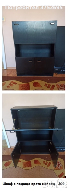 падаща врата напред, с размери: дължина-80см., ширина-31см., височина-114см