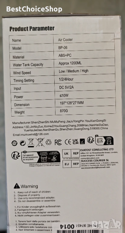 - РЕЗЕРВОАР ЗА ВОДА 1200 МЛ & ТАЙМЕР & ДИЗАЙН, ЗАЩИТЕН ОТ ТЕЧОВЕ позволява ви да настроите таймера на 1/8 час за работа без надзор по време на сън, което позволява на вас или вашите деца да се наслаждавате на четене или дрямка без главоболие и настинки, причинени от продължителни студени ветрове. Охладителят за вода може да работи 6-8 часа, когато е пълен, така че не е нужно да ставате, за да добавяте вода многократно. Дизайнът на горния резервоар за вода увеличава комфорта при добавяне на вода и предотвратява изтичане на вода.