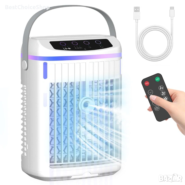 4-в-1 Портативен климатик, воден вентилатор с 3 скорости и нощна светлина