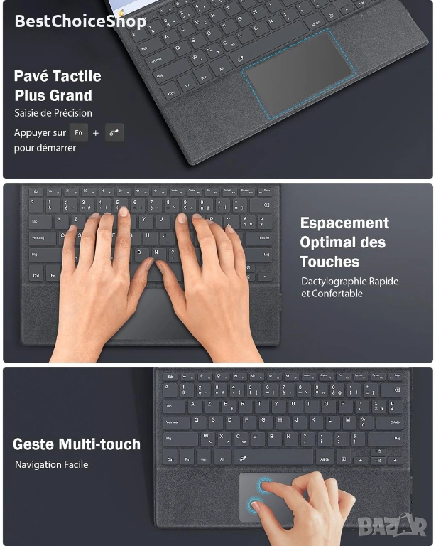 Защита от фалшиво докосване - Тъчпадът е по-голям от този на подобни клавиатури. Функцията му за защита от фалшиво докосване ви освобождава от притесненията от докосване на тъчпада по погрешка.
