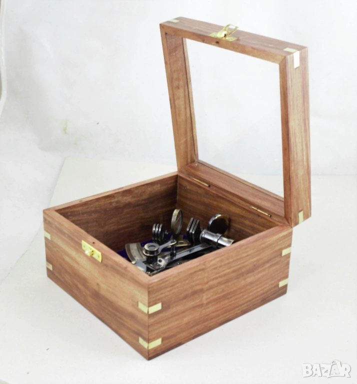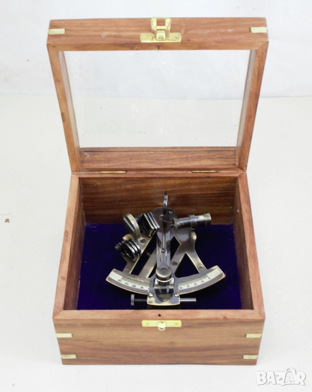 500 Корабен секстант античен в дървена кутия → Обява 54008767