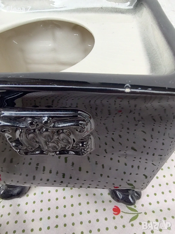 Този голям керамичен чайник е висок 21.5см, дължина 25см, широчина 11см, и е доста тежък.