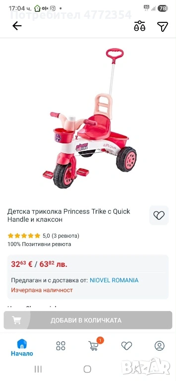 Триколка за дете като нова липсва седалката само лично предаване 10 евро