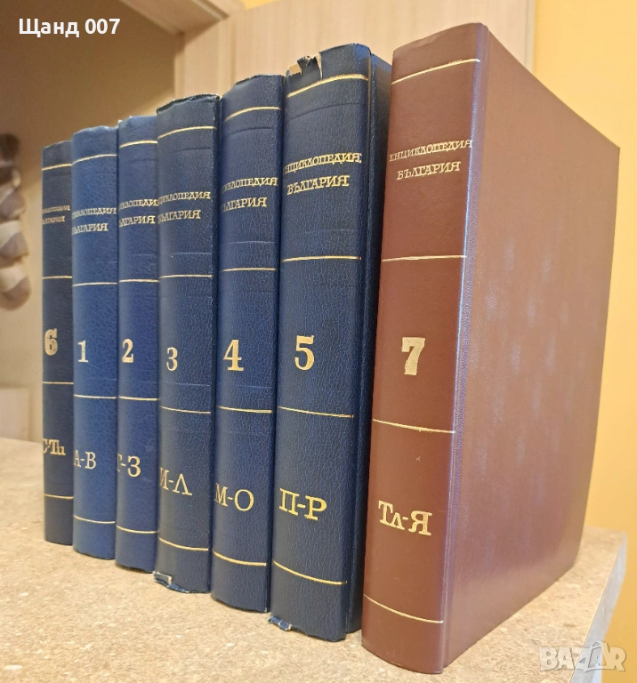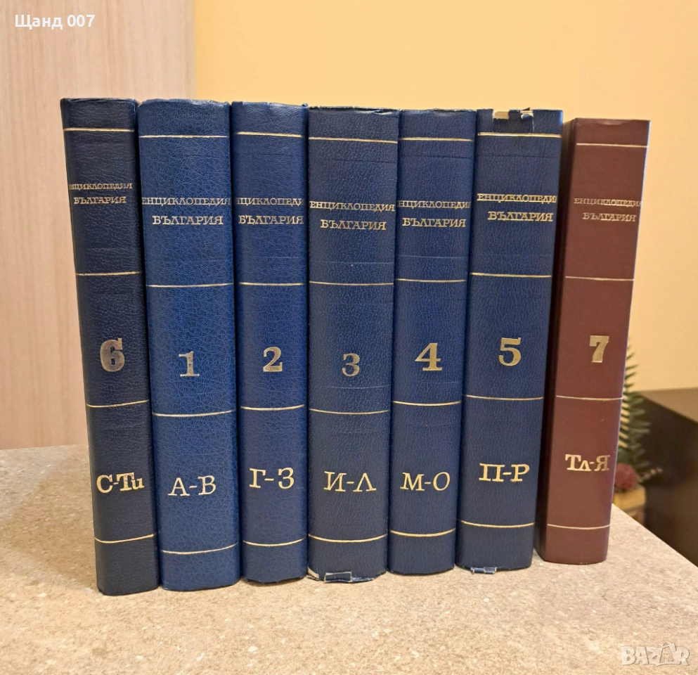 Продавам 6 тома Енциклопедия България с карти. Състояние: отлично, няма забележки, надраскани или липсващи страници. Том 1 - 6 не се продават по отделно. Том 7 се продава за € 25.