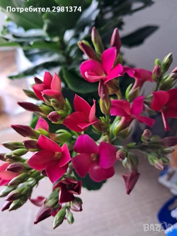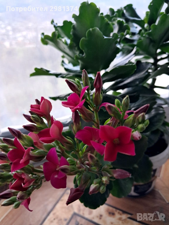 Каланхоето е цикламено розово към лилаво на цвят.С два корена е цветето.Реални снимки