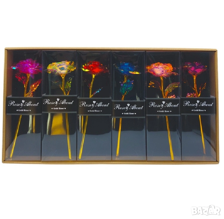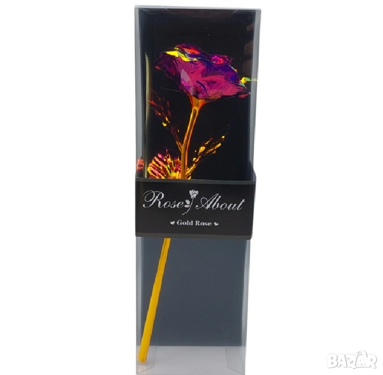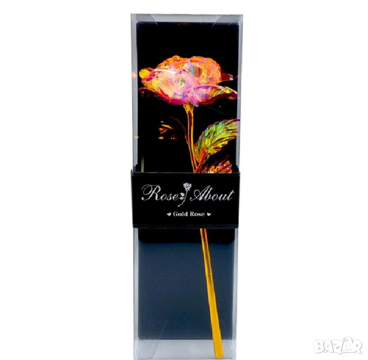 Елегантна светеща роза в стилна подаръчна кутия с прозрачен капак – перфектният начин да изразите любов и внимание.
