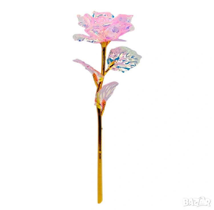 Розата е изработена от нежно фолио и е обвита с фина LED лента, която създава красива и романтична атмосфера. С едно натискане на малкото сърчице светлините се включват и превръщат подаръка в истинско вълшебство.