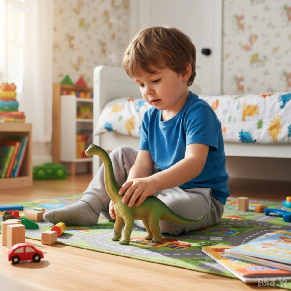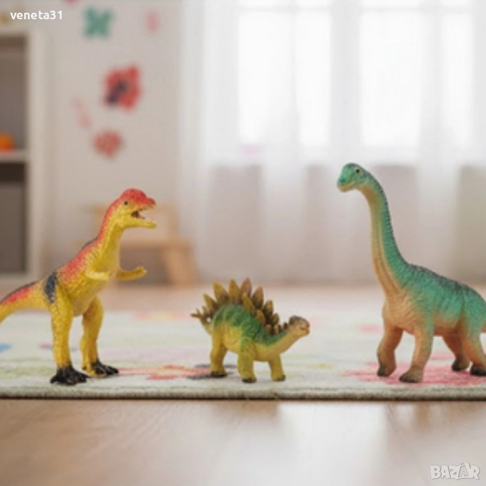 Варианти: Дилофозавър: Варианти: Пахицефалозавър: Варианти: Брахиозавър: Варианти: Трицератопс: Варианти: Стегозавър: Ако детето ти обича динозаврите, този комплект “Dinosaur Era” ще го зарадва! Всеки динозавър реве при натиск – реалистичен звук, който оживява играта. Има различни видове (T-Rex, Трицератопс, Брахиозавър и др.) с дължина 27–33 см, изработени от безопасна PVC пластмаса. Развива въображението, познанията и сетивата на детето. Подходящ за възраст 3+. Чудесен подарък за малки изследователи