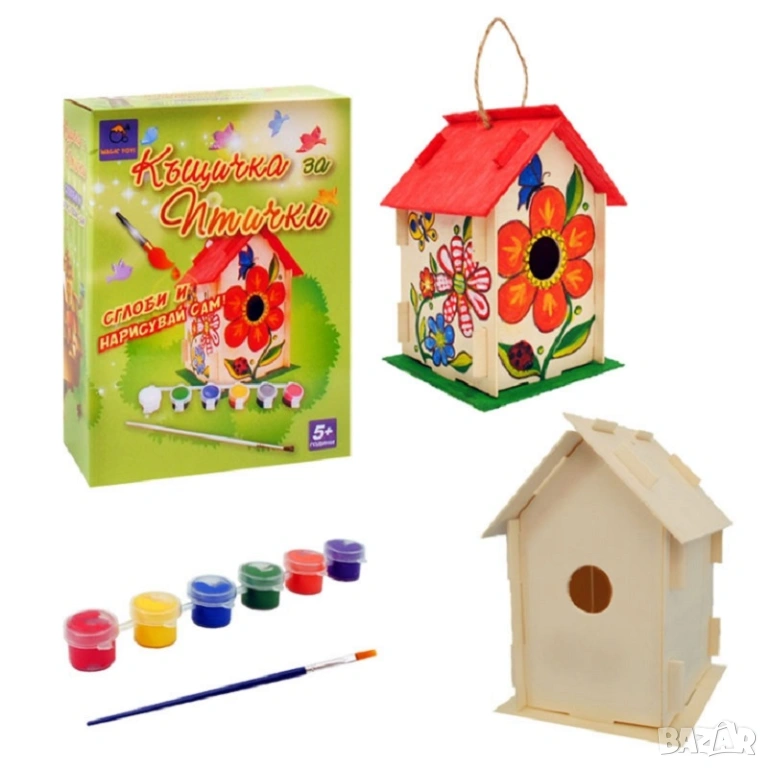 Сглобяването и оцветяването превръщат всяко дете в малък творец, а готовата къщичка може да се използва като красива украса за дома или градината.