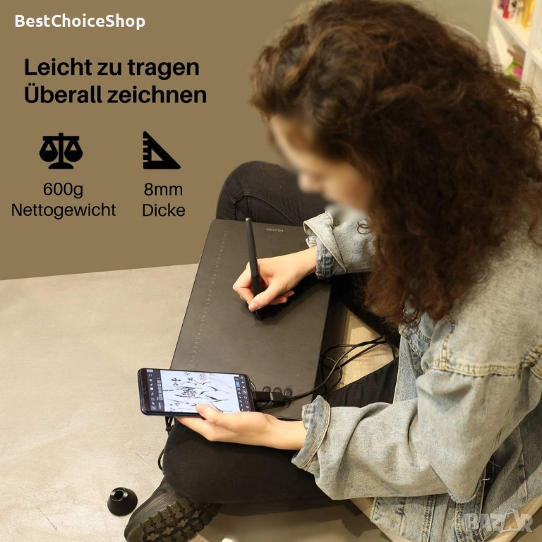 - 🏆 HUION HS610 за компютър и мобилни устройства:Първият графичен таблет на HUION, който не само поддържа операционни системи Windows, MacOS 10.12 или по-нова версия и Linux, но също така поддържа операционна система Android 6.0 или по-нова версия, което допълнително ще улесни рисуването на открито. OTG конекторът е необходим, когато таблетът HS610 е свързан към мобилен телефон или таблет.