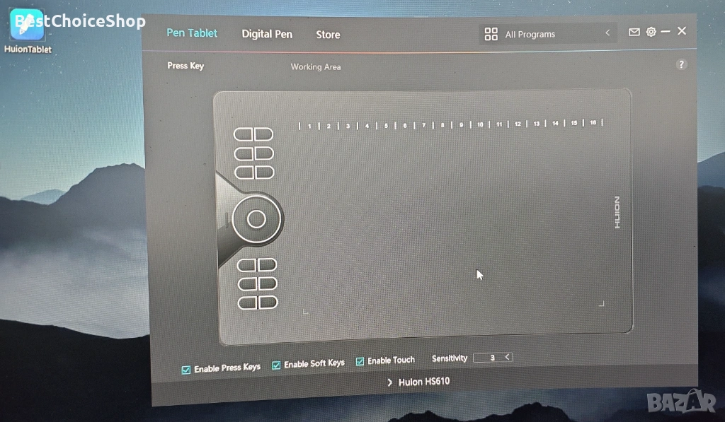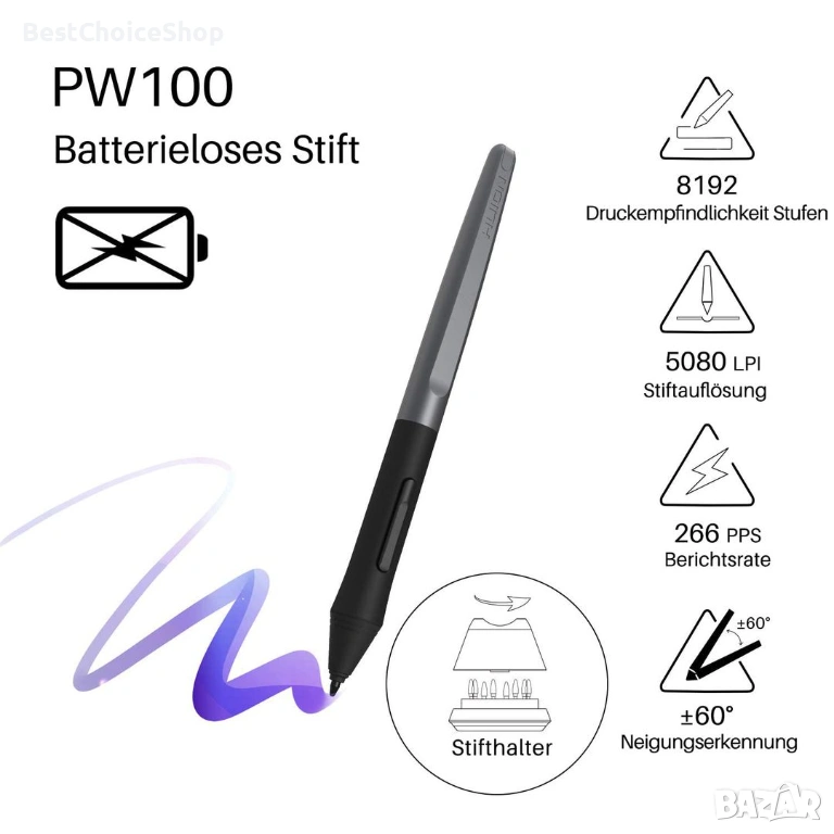 - 🏆 Писалка без батерии PW100: Цифровата писалка PW100, разработена с технология за електромагнитен резонанс, ви позволява да творите спокойно. Противоплъзгащият се и устойчив на пот силиконов захват помага за намаляване на умората при рисуване. Горният клавиш служи като еквивалент на щракване с десен бутон на мишката, а долният клавиш служи по подразбиране като гумичка. Няма нужда да обръщате писалката, когато използвате Huion hs610.