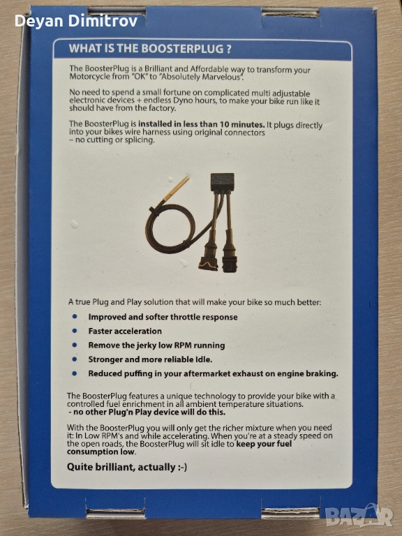 Инсталира се лесно. Booster plug-a работи, когато моторът се кара на ниски обороти или при ускорение. Ако се поддържа постоянна скорост се изключва, за да харчи по-малко гориво.