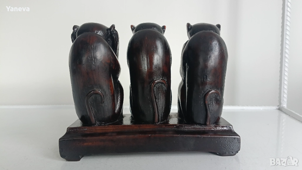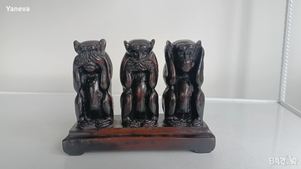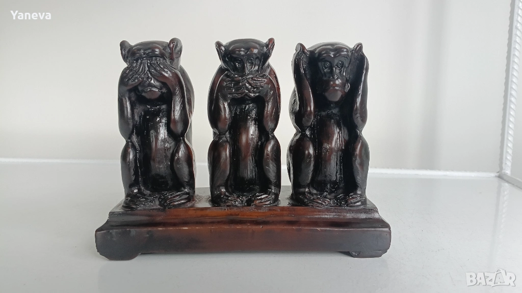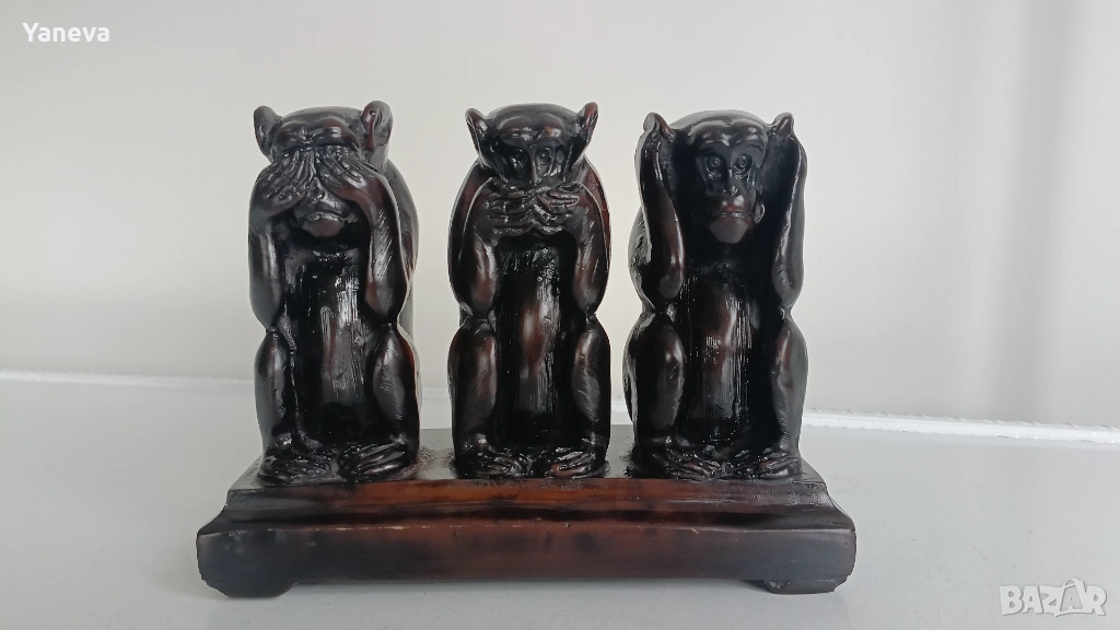 Трите мъдри маймуни , символизиращи фразата „не виждам зло, не чувам зло, не говоря зло“. → Обява 54009614