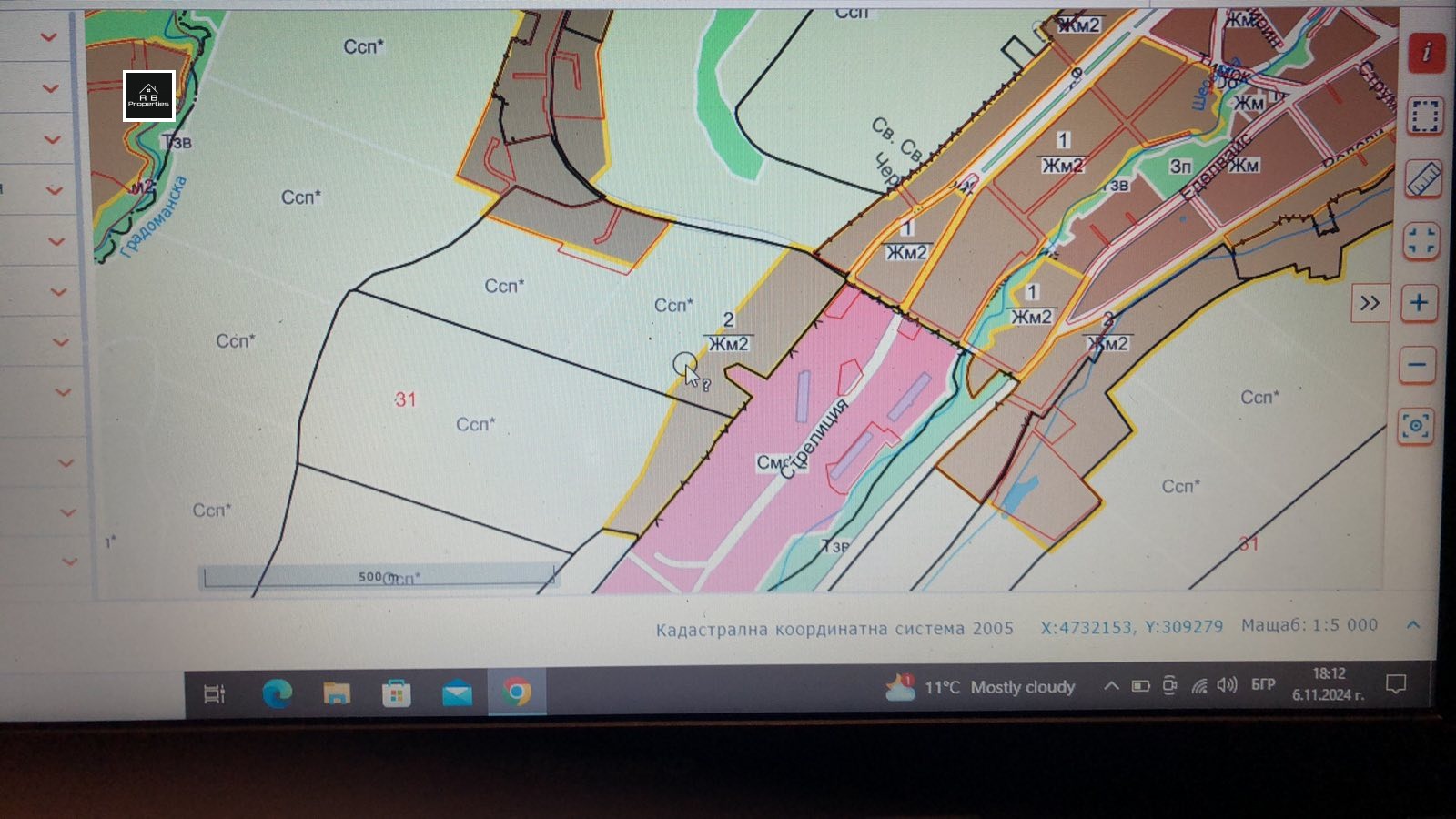 Поземлен имот с 55 кв.м. лице. Равен терен с правилна форма. Попада в зона ССП. Граничи с регулационна зона Жв и Жм2. На 60 метра от имота има около 10 нови къщи и няколко в строеж. Подходящо е както за складова база, така и за комплекс от къщи.