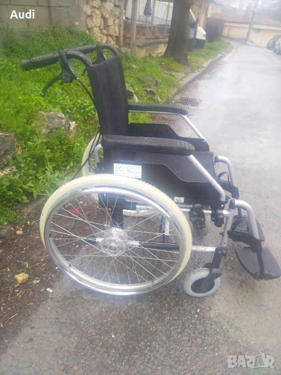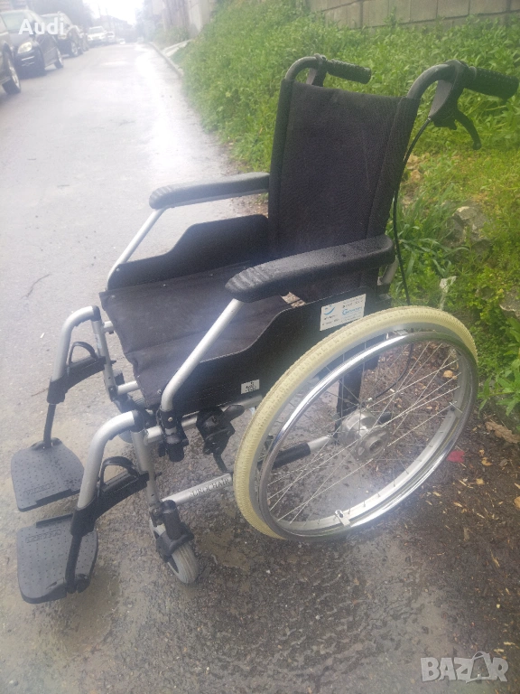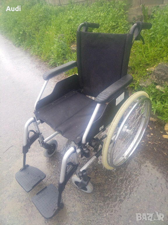 Сгъваема инвалидна рингова количка със степенки Марка: INVACARE Ширина на седалката 45см Дълбочина 4
