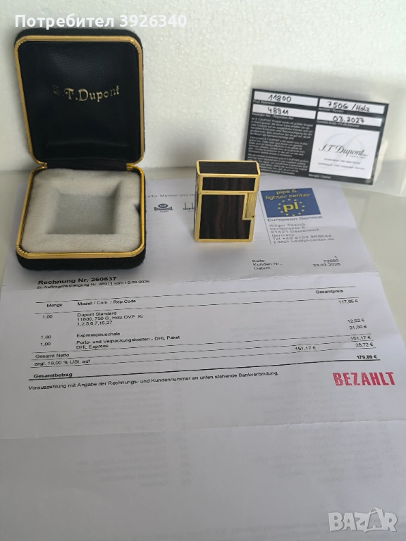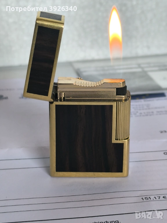 Изключително рядка и ценна запалка. S.T. Dupont L1, 18-каратово злато и дърво от Мадагаскар, с гаранция. Запалката тежи 107,3 грама и съдържа приблизително 30 грама 18-каратово злато. Само златото струва приблизително 3000 евро! Истинско произведение на изкуството! Запалката се предлага с гаранционна карта, фактура и оригинална кутия.Запалката е сервизирана в лицензиран сервиз на дюпон има една година гаранция Вижте снимките; те са част от описанието!
