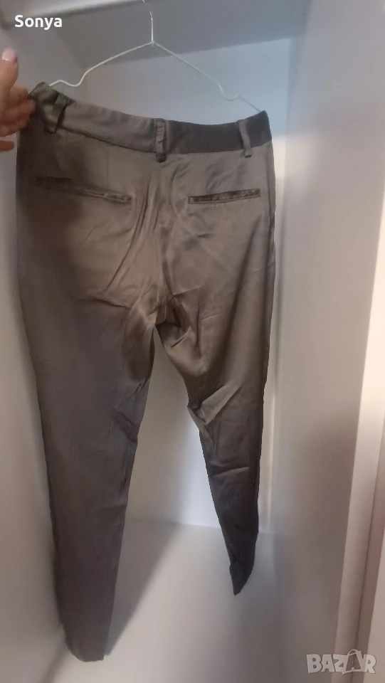 Плетена бяла блуза с розови пайети Mohito, размер S, сив панталон размер 38