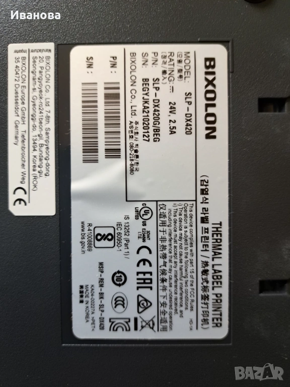 Термопринтер за етикети Bixolon SLP-DX420 – Сериен интерфейс – НОВ И В КУТИЯ