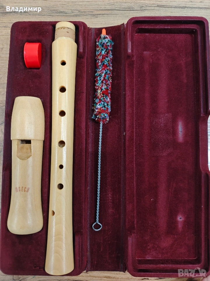 Продавам висококачествена немска блокфлейта MOECK 125 Schul Sopran. Инструментът е изработен от подбрано кленово дърво, което осигурява топъл и чист звук, характерен за световноизвестната марка Moeck. ​Характеристики и състояние: *​Модел: Moeck 125 (Schul Sopran Deutsch). *​Система: Немска система на пръсти (German fingering). *​Материал: Светло кленово дърво (Maple). *​Състояние: Инструментът е в безупречно състояние, без никакви следи от употреба (неразличим от нов). *​Комплект: Продава се като пълен оригинален комплект, който включва: ​Дървена блокфлейта (две части). ​Оригинален твърд калъф с червено кадифено уплътнение за сигурно съхранение. ​Почистваща четка. ​Кутийка (пълна) със смазка . ​Този модел е изключително подходящ както за начинаещи и ученици в музикалните школи, така и за напреднали любители на автентичния звук на дървените инструменти. Моля, разгледайте и другите ми обяви.