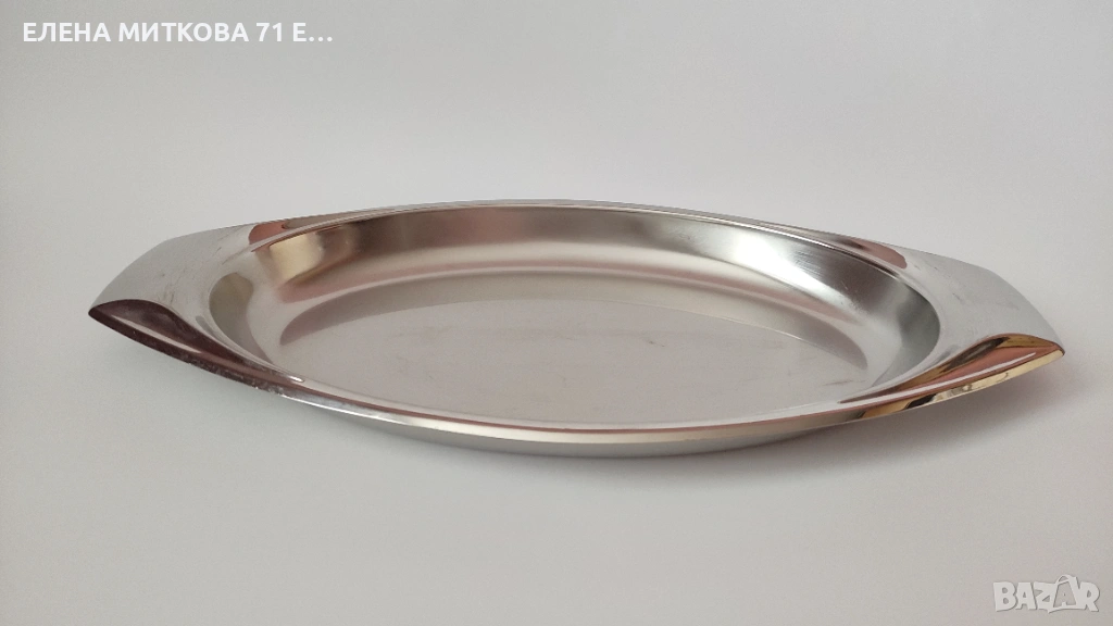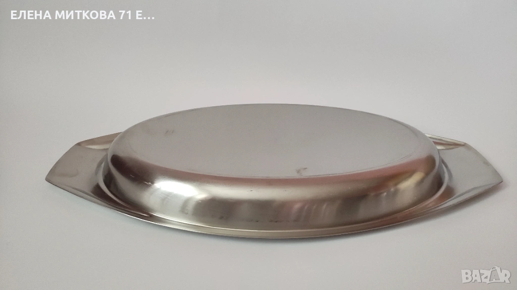 1/Овална тава с габаритни размери 44 х 23 см , вътрешни размери 33 х 20 см , дълбочина 3.5 см , тегло 620 гр-цена 20 €/39.12 лв