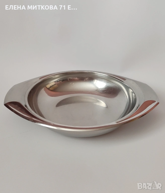 2/Кръгла тавичка-диаметър 22 см , дължина с дръжките 28 см , дълбочина 5 см , тегло 490 гр-цена 12 €/23.47 лв