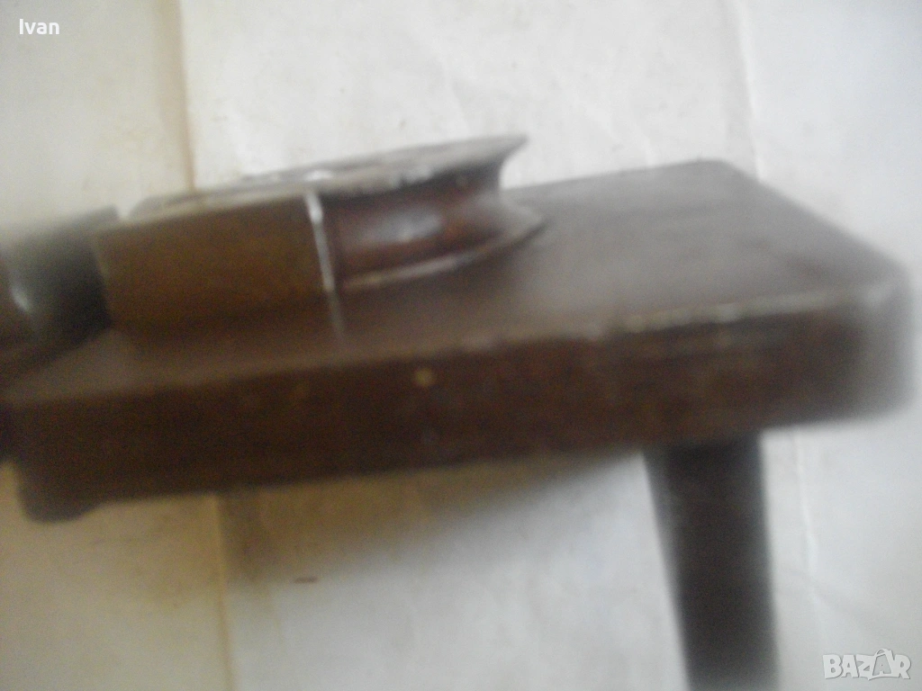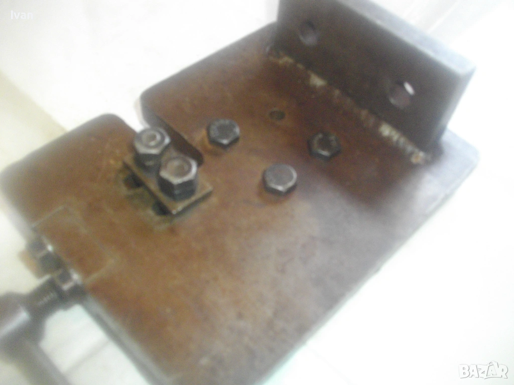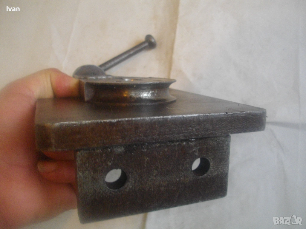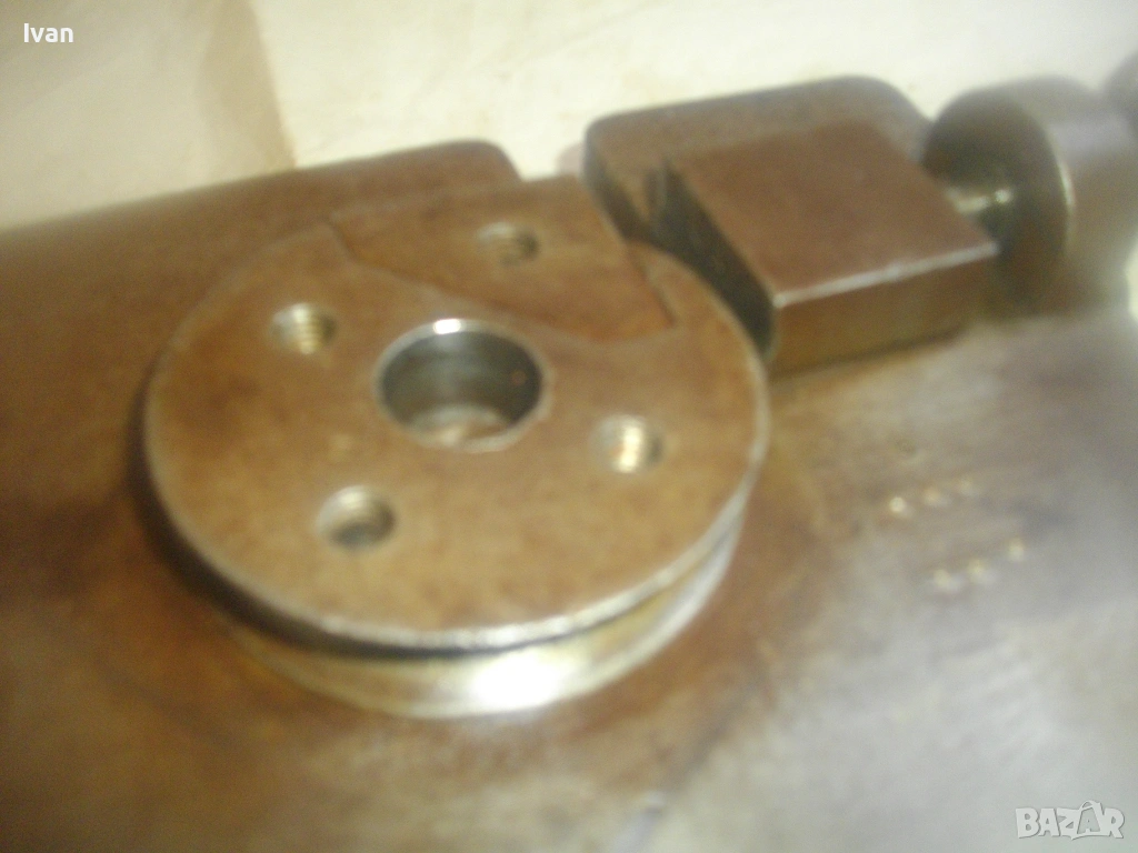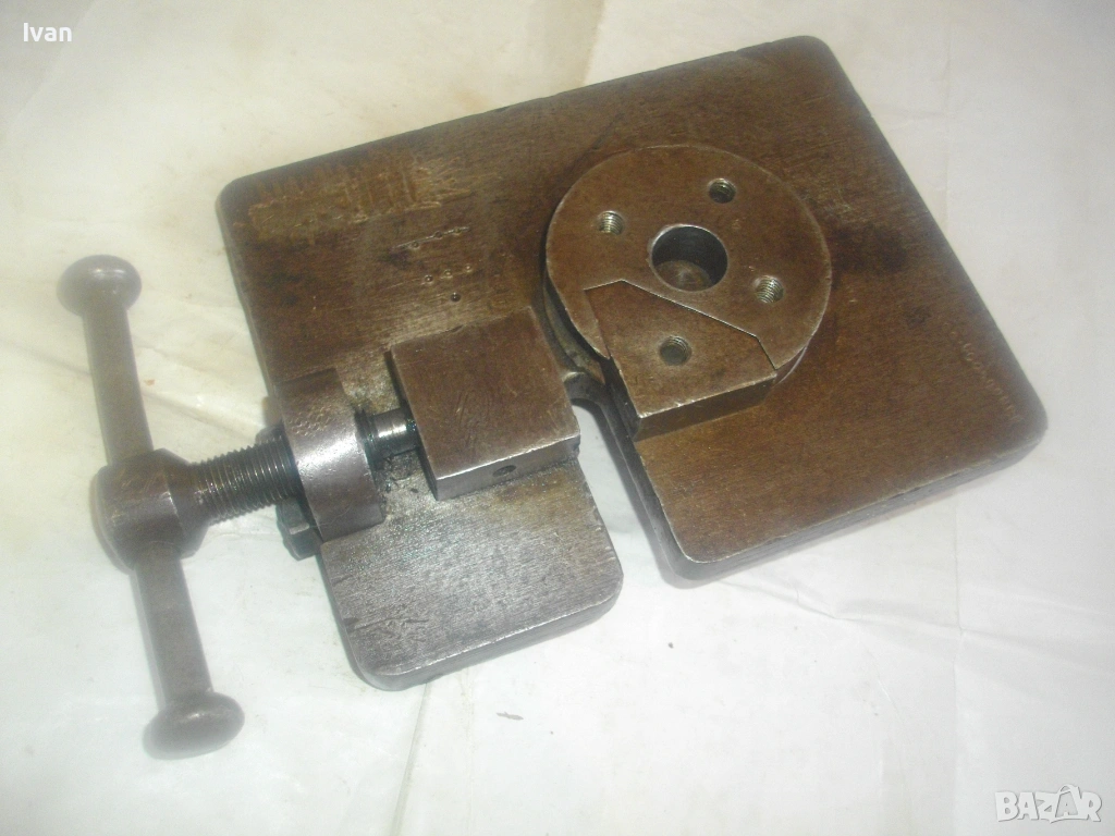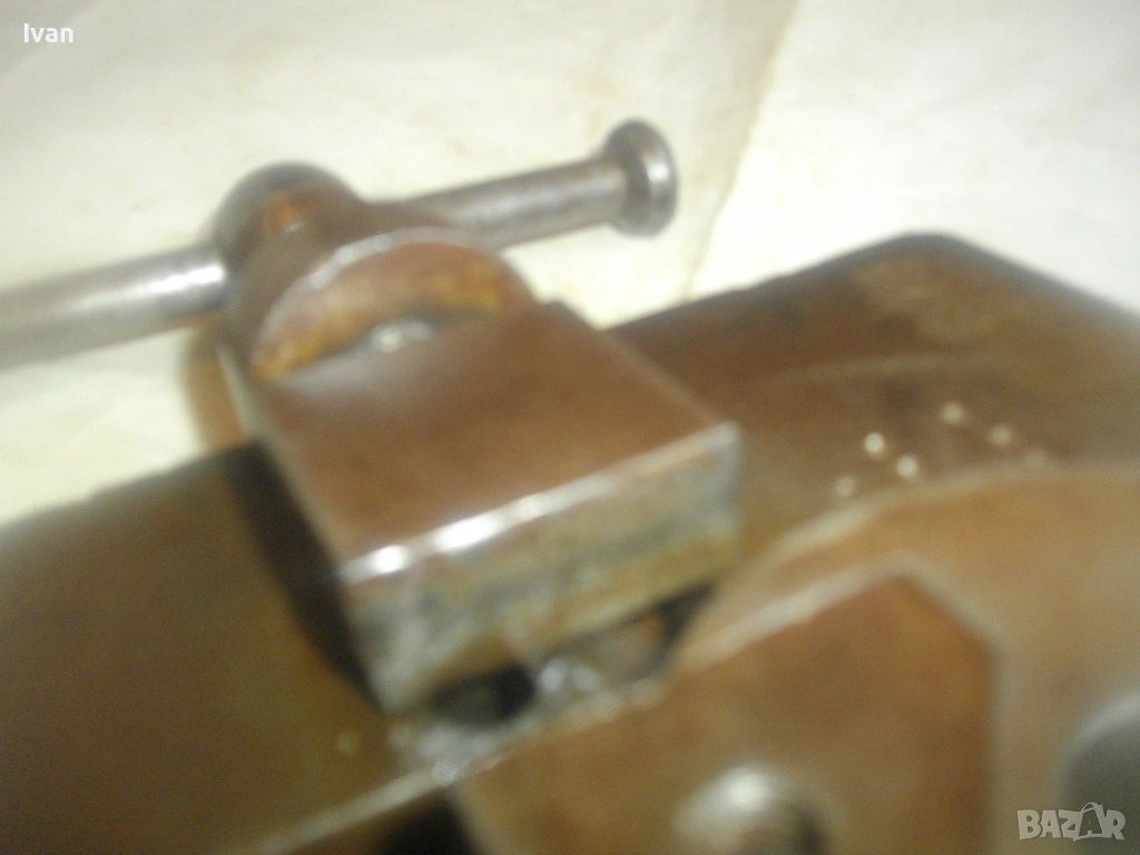 Старо качество масивен ръчен инструмент Универсален огъвач за метални профили, който служи за огъване на метални листове и пръти, за изработване на различни декоративни елементи от метални профили: шини, квадрат, кръг и т.н.. Уредът е лесен за използване и изисква минимална поддръжка. Инструментът е изцяло от масивна закалена стомана, с масивна основа, която стой здраво и стабилно. Плочата основа е с размери 18 см х 14 см и дебелина 14 мм.От едната страна има отваряема стяга тип менгеме, с което се фиксира огъвания метален елемент. Кръгът пръстен за огъване е с диаметър ф 70 мм и жлеб за огъване 14 мм - огъва метален прът арматура профил макс до ф 14 мм. Отварянето на стиската притисквач менгеме е до 20 мм от кръглия пръстен за огъване. На основата плоча има канал, в който се придвижва ръчно огъвания елемент.От другата страна отдолу на основата регулираща метална пластина стопер за застопоряването. Винта на въртока на менгемето върви съвсем леко, без запъване и без луфтове.Дължина на инструмента заедно с въртока на стиската притисквач - 23 см.
