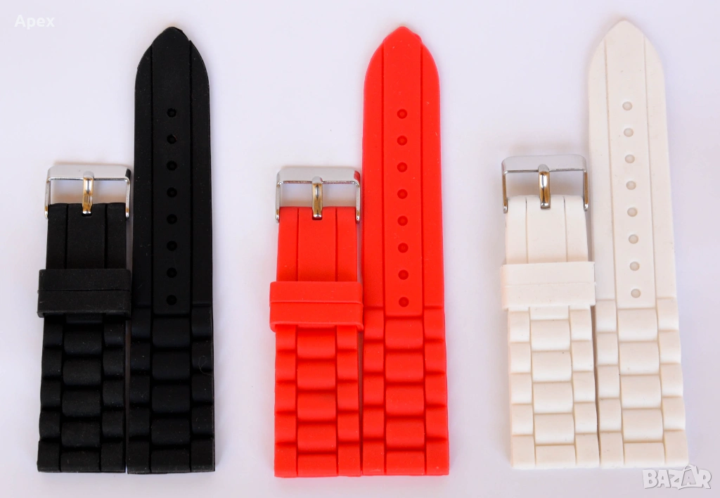Силиконова Каишка за Часовник. Гумени Силиконови Каишки за Часовници 12 18 20 22 24мм Бяла Черна