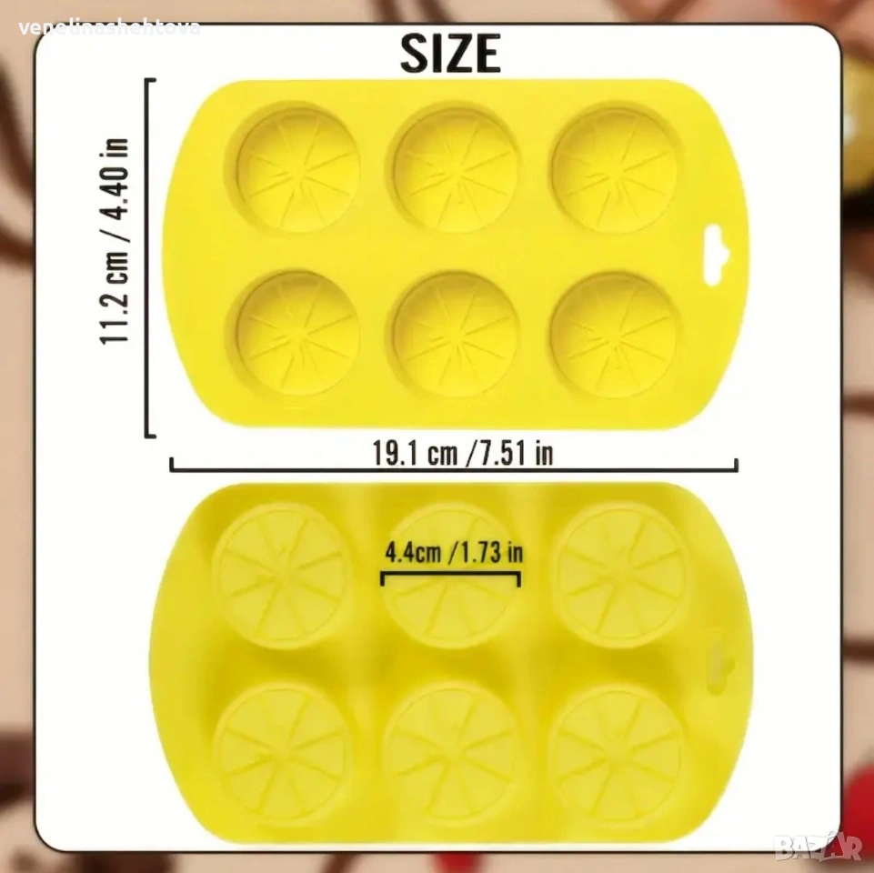 6 броя резена лимон портокал силиконов молд форма шоколад лед гипс смола фондан декорация торта , снимка 1 - Форми - 54011607 6 броя резена лимон портокал силиконов молд форма шоколад лед гипс смола фондан декорация торта , снимка 2 - Форми - 54011607 1/2
