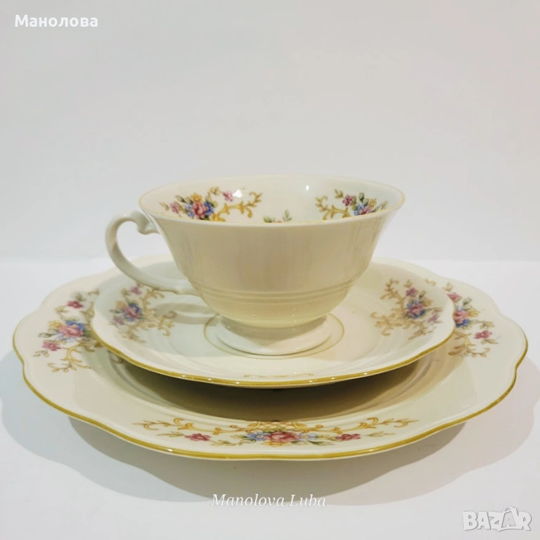 Троен комплект, порцеланова чаша за чай Mitterteich Bavaria.
