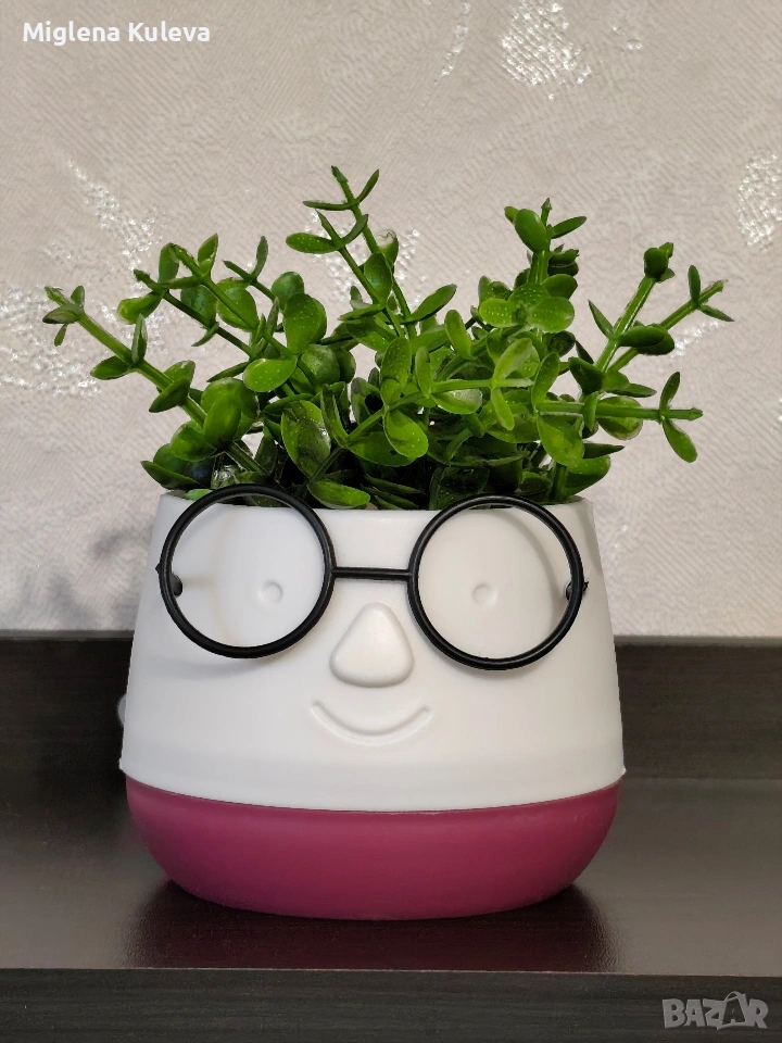 Мини саксийка с изкуствено цвете Очила → Обява 54011889